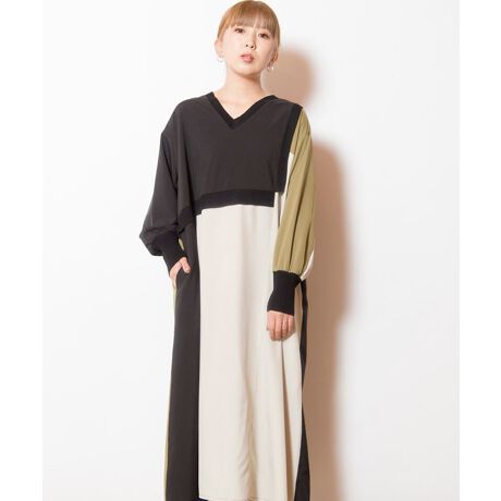 [型番:501010-430O]カラーブロックやリブ切替で存在感を放つワンピース。着こなしの幅が広がる前後2WAY仕様。===========================透け感: なし伸縮性: なし(リブ部分、伸縮性あり)光沢感: なし裏地: なし素材について: 裏がなくともインナーが響きにくく、シワになりにくいしなやかなブラウス地===========================