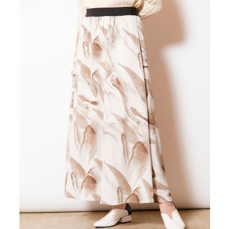 [型番:501006-431S]水彩画のようなタッチで上品な女性らしさを纏うフレアースカート。華やかながら、スモーキーカラーでコーディネートを引き立てる。===========================透け感: なし伸縮性: なし光沢感: なし裏地: あり素材について: とろみ感のある軽やかなプリント地===========================