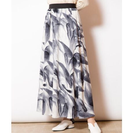 [型番:501006-431S]水彩画のようなタッチで上品な女性らしさを纏うフレアースカート。華やかながら、スモーキーカラーでコーディネートを引き立てる。===========================透け感: なし伸縮性: なし光沢感: なし裏地: あり素材について: とろみ感のある軽やかなプリント地===========================