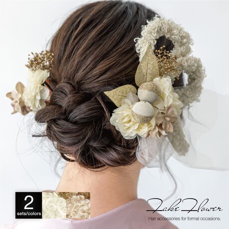 和装のヘアスタイルを彩る、花の髪飾り2点セットです。