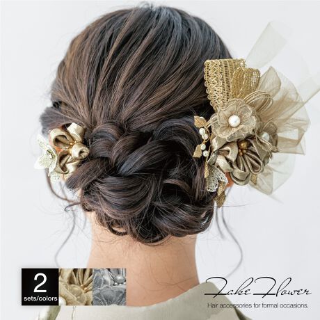 和装のヘアスタイルを彩る、花の髪飾り2点セットです。