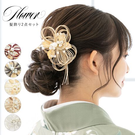 和装のヘアスタイルを彩る、花の髪飾り2点セットです。