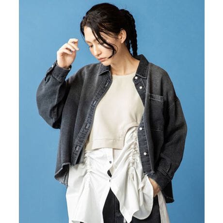 [型番:501090-433B]とろみのある滑らかな肌触りのデニムシャツ。メンズライクなオーバーシルエットをショート丈でY2Kムードに昇華。===========================透け感: なし伸縮性: なし光沢感: なし裏地: なし素材について: とろみ感のある、やわらかなデニム素材===========================