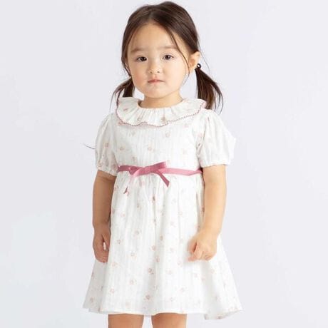 取り外し可能なリボンベルトはお花のプリントカラーと合わせてポイントに。