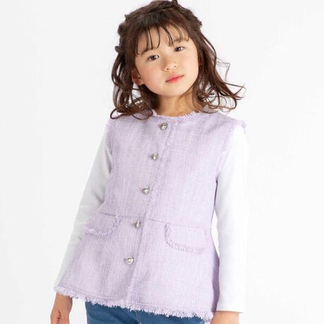 濃淡のある糸をMIXしたサマーツイードのロングベスト。