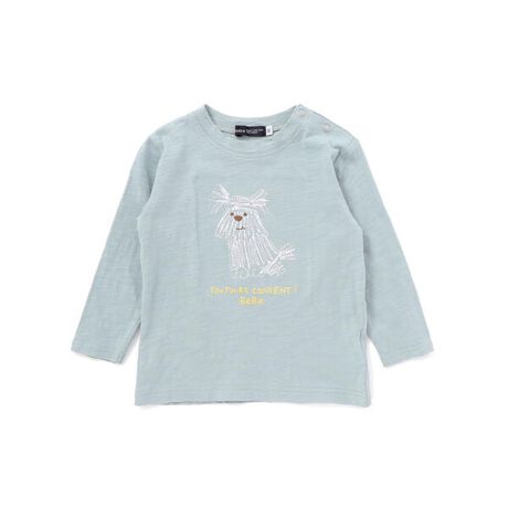 長毛のふわふわとした犬の図案がかわいい長袖Tシャツ。