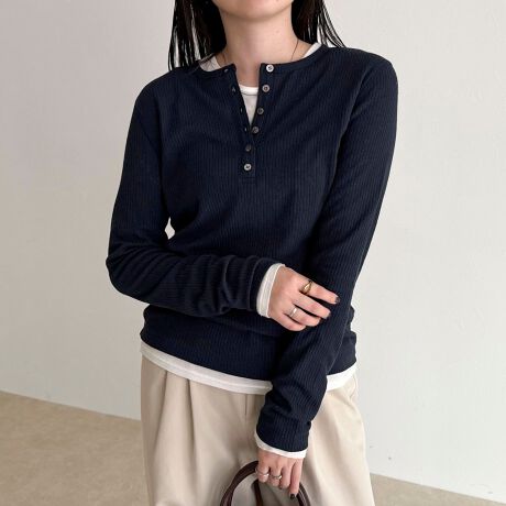 一枚でも重ねても可愛いヘンリーネックプルオーバー