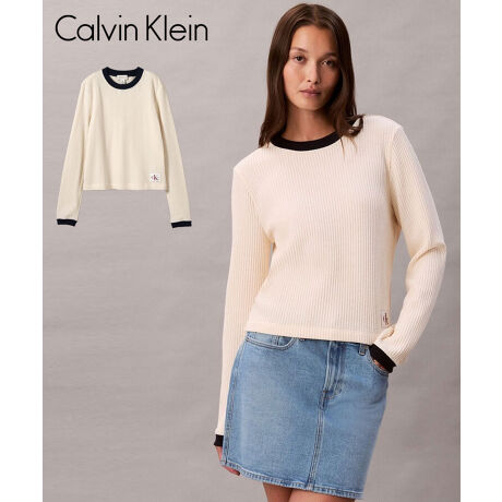 Calvin Klein(カルバン クライン)「LONG SLEEVE WAFFLE T SHIRTVE WAFFLE T SHIRT(Tシャツ) / アイボリー [47D225G]」
