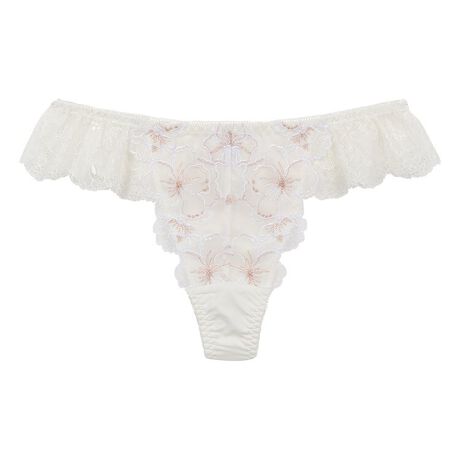 フロントは花柄チュールレースの花びらが付け根に寄り添い、脚を美しく魅せるデザイン。