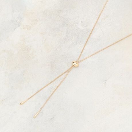 スライド式の調節機能で短め〜長めまで自在、ミニビーンズの上品な艶が顔周りを引き締めます。