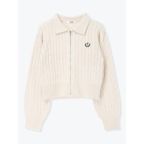 [型番:25550722646]立体感のあるケーブル編みが目を引く、上品な印象の衿付きニット。ほどよくコンパクトな丈感で、自然とスタイルアップを叶えます。フロントはファスナー仕様で着脱しやすく、開けて抜け感を出す着こなしもおすすめ。スカートでフェミニンに、パンツと合わせて大人カジュアルにも活躍する一枚です。