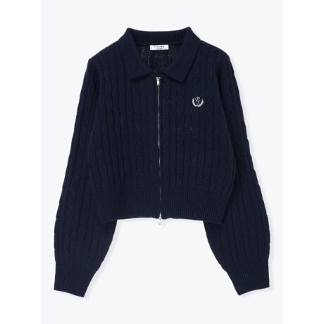 [型番:25550722646]立体感のあるケーブル編みが目を引く、上品な印象の衿付きニット。ほどよくコンパクトな丈感で、自然とスタイルアップを叶えます。フロントはファスナー仕様で着脱しやすく、開けて抜け感を出す着こなしもおすすめ。スカートでフェミニンに、パンツと合わせて大人カジュアルにも活躍する一枚です。