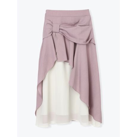 [型番:25550724767]ウエストのリボンモチーフがさりげないアクセントになるロングスカート。縦のラインを意識したシルエットで、甘さを抑えつつ大人っぽく仕上げました。広がりすぎないフレア感で、トップスを選ばずバランス良く着用可能。ブラウスで上品に、ニットやスウェットでカジュアルダウンも楽しめる、着回し力の高い一枚です。