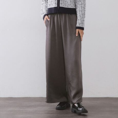 リラクシーな着心地と上品な光沢感が魅力の大人カジュアルなサテンワイドパンツ