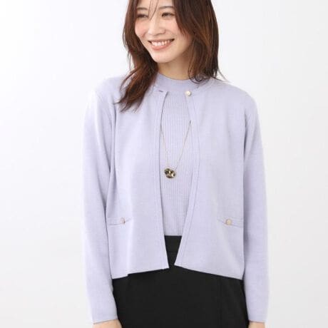 スカートはもちろん、ワンピースとも好相性で女性らしいシルエットを引き立て、上品でエレガントなコーディネートでお召しいただけ、ワイドパンツに合わせてシンプルにまとめてもほどよいきちんと感が漂います。