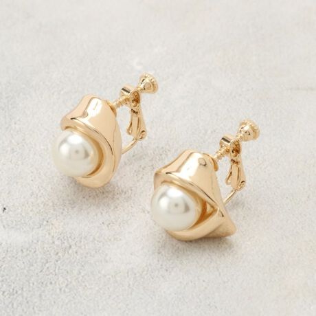 フェイクパールとメタルのバランスが映えるワンポイント、顔周りに上品なアクセントを添えます。
