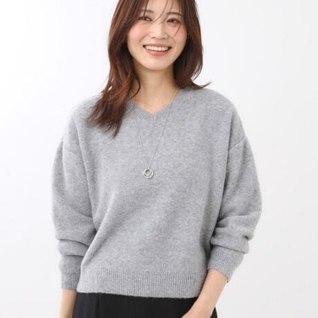 パンツにもスカートにも合わせやすいシルエットで、Vネックがお顔周りもすっきりと見せてくれます。
