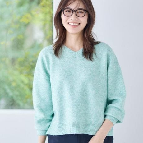 パンツにもスカートにも合わせやすいシルエットで、Vネックがお顔周りもすっきりと見せてくれます。