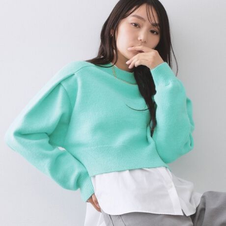 カラーリングが目を惹くスウェットライクなショートニットプルオーバー