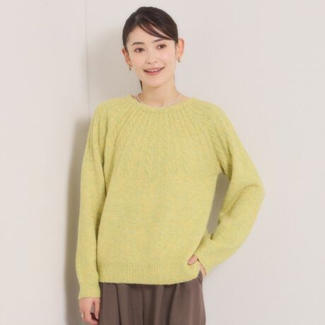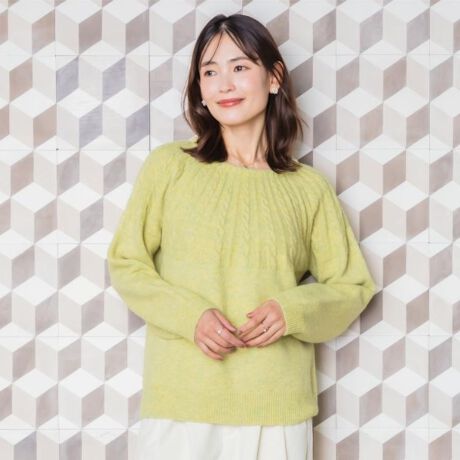 ケーブル柄入りの求心柄が胸元にアクセントを添えてくれます。