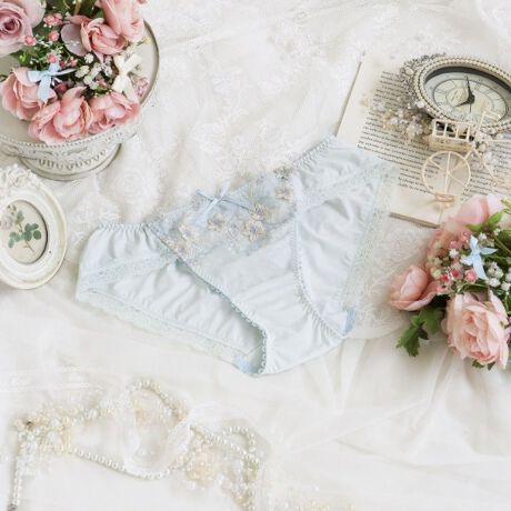 クレマチスの可憐な花々をモチーフに、小花や茎などを繊細なラメ糸で表現したシリーズです。パッカー手法でふっくらと咲かせた大輪のクレマチスは、キラキラとしたラメ糸をあしらい、動くたびにさりげなくきらめく上品なデザインに仕上がりました。上辺のシアー感のあるスカラップは、軽やかでキュートな印象をプラス。毎日を特別な気分にしてくれるような、清楚で可愛らしいコレクションです。