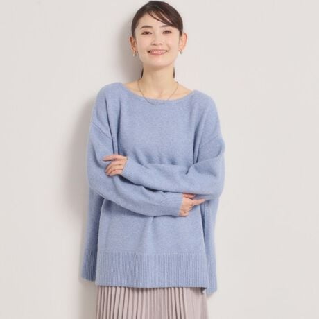 リラックス感あるゆるシルエットに、顔回りすっきり見えのボートネックが抜け感を演出。