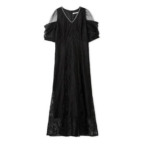 定番の総レースを使用し、袖はチュールとレースの2枚仕立てで立体感のあるデザインに。