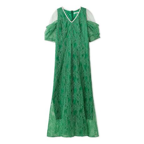 上品な総レースをメインに、袖は軽やかなチュールを重ねた贅沢な仕様。