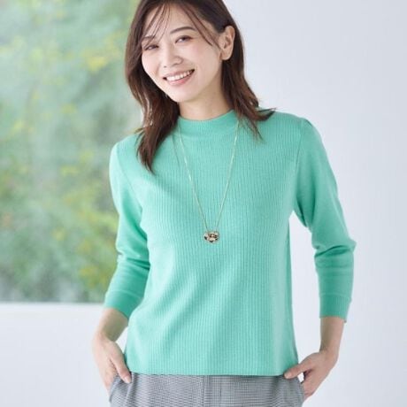 リブ柄は、ヨーク風の柄切り替えがさりげないアクセントとなり、お顔周りをすっきり見せてくれます。