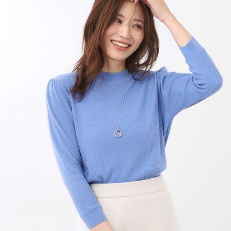 リブ柄は、ヨーク風の柄切り替えがさりげないアクセントとなり、お顔周りをすっきり見せてくれます。