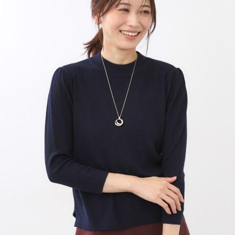 リブ柄は、ヨーク風の柄切り替えがさりげないアクセントとなり、お顔周りをすっきり見せてくれます。