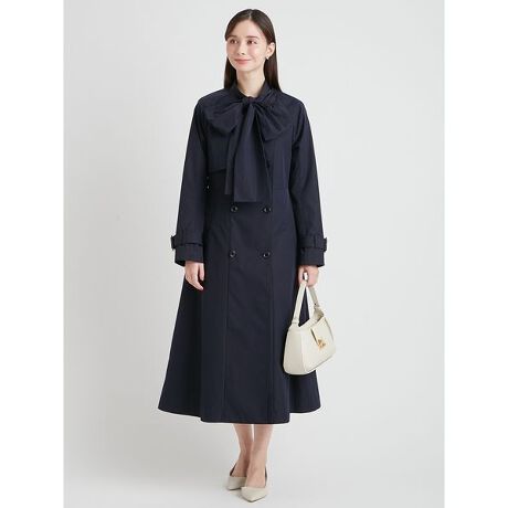 取り外し可能なリボン付きのロングトレンチコート。