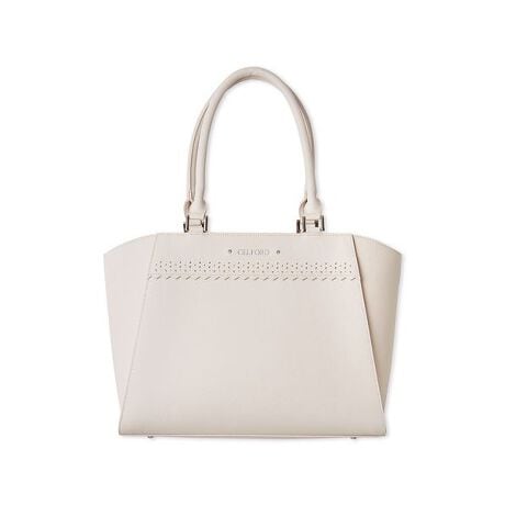 正面のカットワークが繊細で清楚な印象を与えるビジネスバッグ。