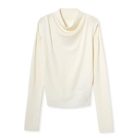 <b>【スタンドカラーにドレープ感を加えた人気のコールドショルダースリーブリブニットプルオーバー】</b>