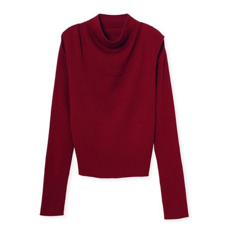 <b>【スタンドカラーにドレープ感を加えた人気のコールドショルダースリーブリブニットプルオーバー】</b>
