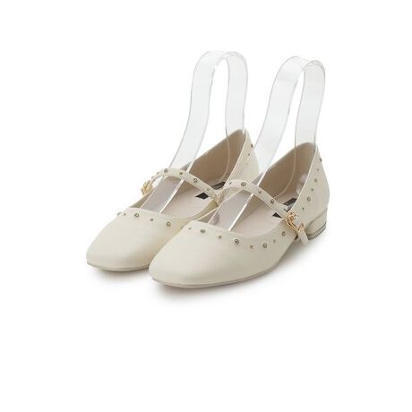 人気のビジュースタッズを、くせのないシルエットでベーシックな、どんなスタイリングにも合わせやすいフラットシューズに落とし込みました。