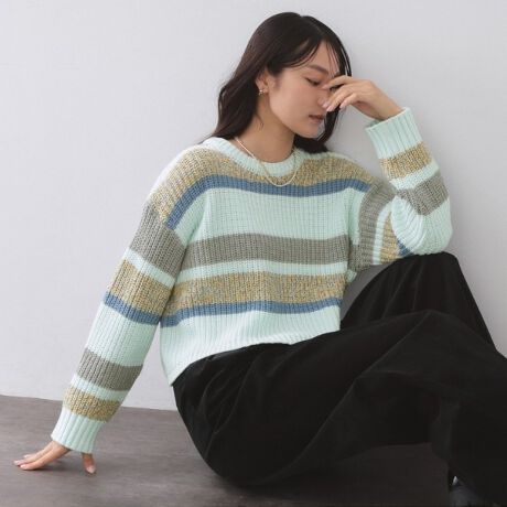 ・ざっくりしたミドルゲージのカラーボーダーニット。