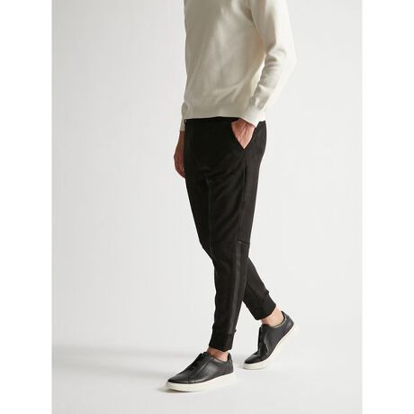 程よい肉厚感と上品な光沢が魅力のフェイクスエードデザインリブパンツ。