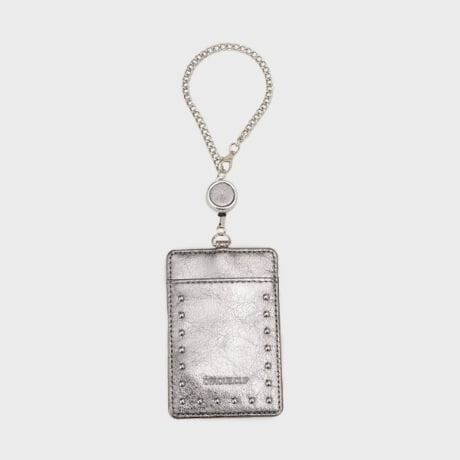 ・トレンド感のあるスタッズを配したリール付きチャームパスケースです。