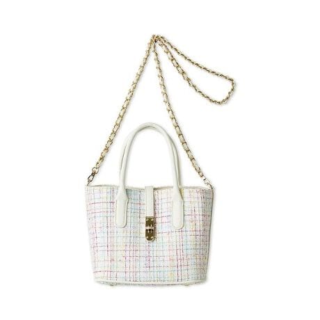 四角いマチが特徴の小ぶりのツイードトートバッグ。