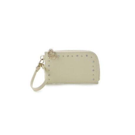 外側のカードポケットにカードを4枚収納できるほか、開閉しやすいL字のファスナーを開けると前後のオープンポケットの他、中央にも輪のポケットと、鍵も収納できるキーチェーンをお付けしました。