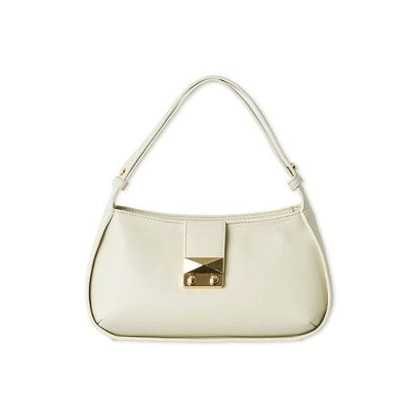 正面のメタル金具とやや丸みのあるシルエットがトレンドのトラッドテイストをほんのり感じさせるデザイン。