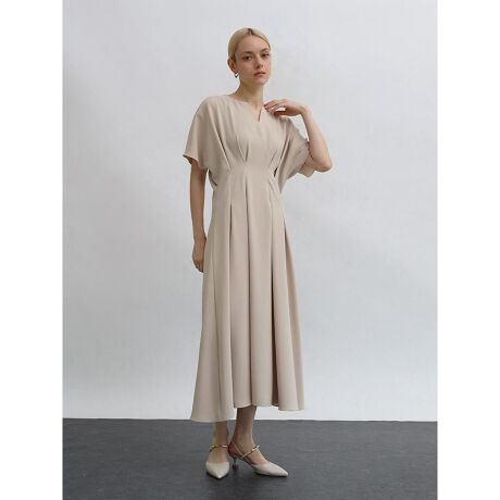 フロントのワイドタックデザインによる立体感と奥行きが魅力のワンピース。ウエスト部分が自然と体にフィットし、スカート部分も着用時の動きに沿って美しいドレープ感を演出。首元はすっきりしたニュアンスのあるデコルテラインに仕上がるキーネックに。1枚で完結し、きちんと見えのするワンピースは様々なシーンに寄り添う大人に嬉しい一品です。