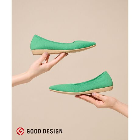 ■素材 ・LIGHT WEIGHT 片足わずか120g、おおよそタマゴ2個分の軽さです。秘密は一枚仕立てのニットアッパーと発泡素材のアウトソール。軽量リサイクルポリエステルヤーンでしなやかに編みたてることで裏材や芯材を排除。アウトソールはランニングシューズのような軽さとクッション性に、パンプスのきちんと感もある絶妙なバランスにたどり着きました。
