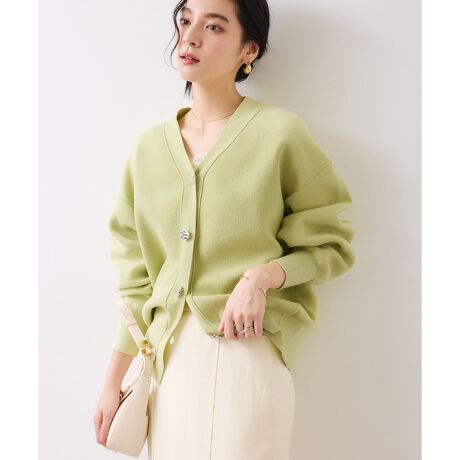 抜け感のあるVネックデザインで、女らしい丸みのある袖と身頃が存在感のあるカーディガンに仕上がっています。
