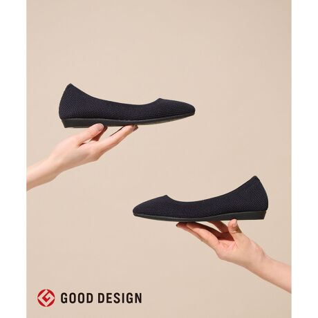 ■素材 ・LIGHT WEIGHT 片足わずか120g、おおよそタマゴ2個分の軽さです。秘密は一枚仕立てのニットアッパーと発泡素材のアウトソール。軽量リサイクルポリエステルヤーンでしなやかに編みたてることで裏材や芯材を排除。 アウトソールはランニングシューズのような軽さとクッション性に、パンプスのきちんと感もある絶妙なバランスにたどり着きました。