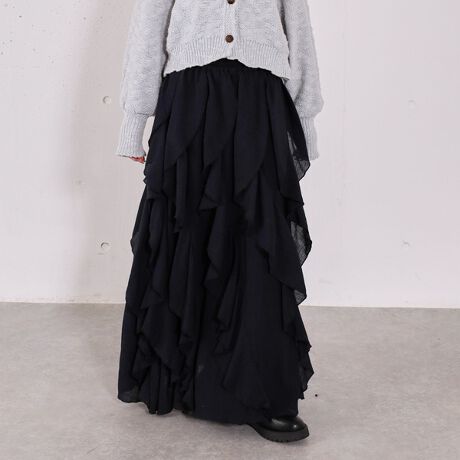 ・ボリュームのあるスカートはコンパクトなトップスと相性◎