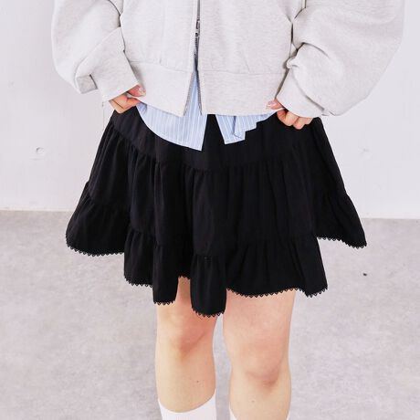 ■ふんわりシルエットが可愛い、コットンライクティアードミニスカート■