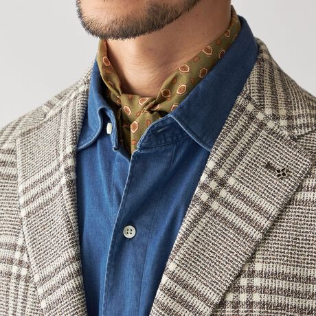 規則的に配置されたペイズリー柄が首元をエレガントに彩ります。