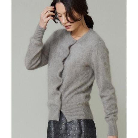 ■デザインカシミヤ100%の編地にファー加工を施したアシンメトリーカーディガン。計算されたボタンの位置により生まれるドレープが美しいカーディガンです。着用時のスタイルアップを叶え、上品な印象になるようシルエットにこだわって仕上げた一枚。うっとりするほど格別なカシミヤの肌触りは手放せなくなる素材の一つ。ボタンの位置でドレープ感を変えられるのでコーディネートに合わせて楽しんでいただけます。■素材カシミヤとはカシミヤヤギの柔らかいうぶ毛を指します。カシミヤは細くて柔らかく、肌触りが良いのが特徴で高級品として扱われます。この糸はカシミヤの中でも限定された細さにこだわり、ふんわりとした毛足が出るように作られています。さらに編立ててからファー加工という特殊な技術を施すことでまるで毛皮のような長い毛足と柔らかい風合いを生み出した素材になっております。■下げ札サイズ表記4=(13号)同素材のニット品番:8054170834■サンプル撮影商品画像の商品はサンプルです。実際の商品とはサイズや色味、素材、デザイン等の仕様が若干変更になる場合がございます。■カラーについては、可能な限り実際の商品に近いカラーで撮影をおこなっておりますが、照明の関係により実際の製品とは色味が違って見える場合があります。またパソコン・スマートフォンなどの環境により、若干製品と画像のカラーが異なる場合もございます。現物と画像のカラー差異については返品理由となりませんので、予めご了承ください。■サイズ表記はあくまで目安となります。